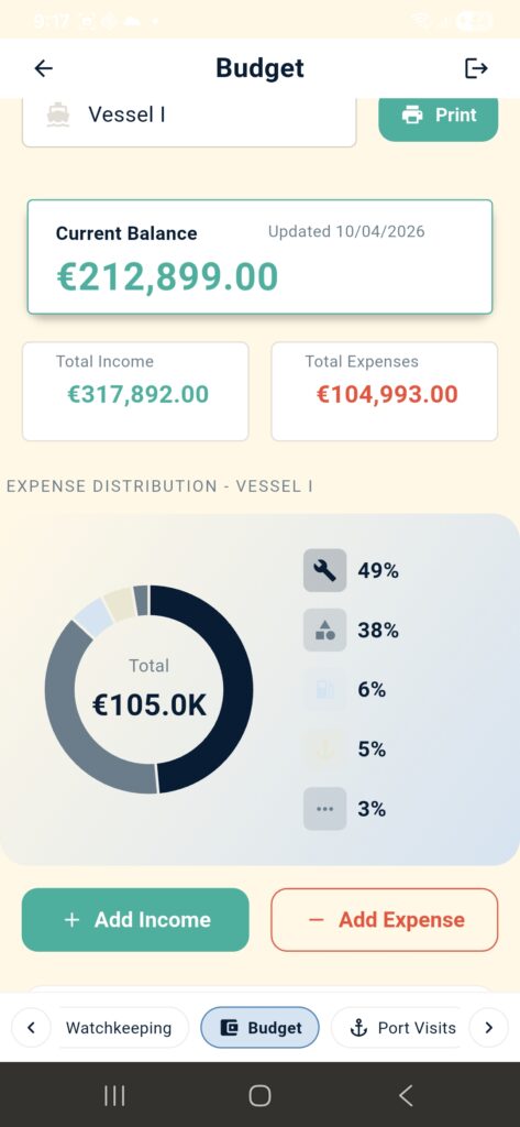 - Budget tracking by vessel